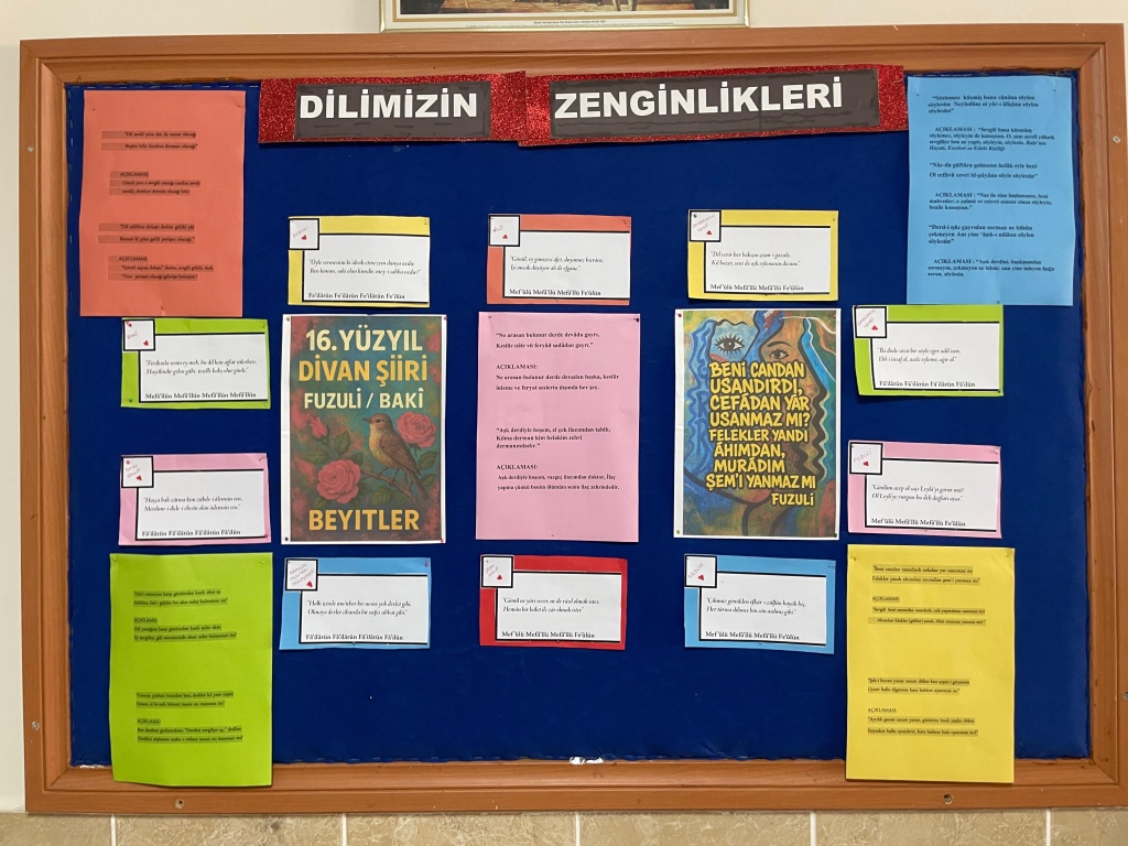 Dilimizin Zenginlikleri projesi kapsamında öğrencilere divan şiirini, Arapça-Farsça kökenli sözcükleri ve tamlamaları öğretmek onların hem dilsel hem de kültürel gelişimine katkı sağlamıştır.Divan şiiri, süslü ve sanatlı söyleyişiyle geçmişin düşünce dünyasını, değerlerini ve estetik anlayışını yansıtan bir kültür hazinesidir.